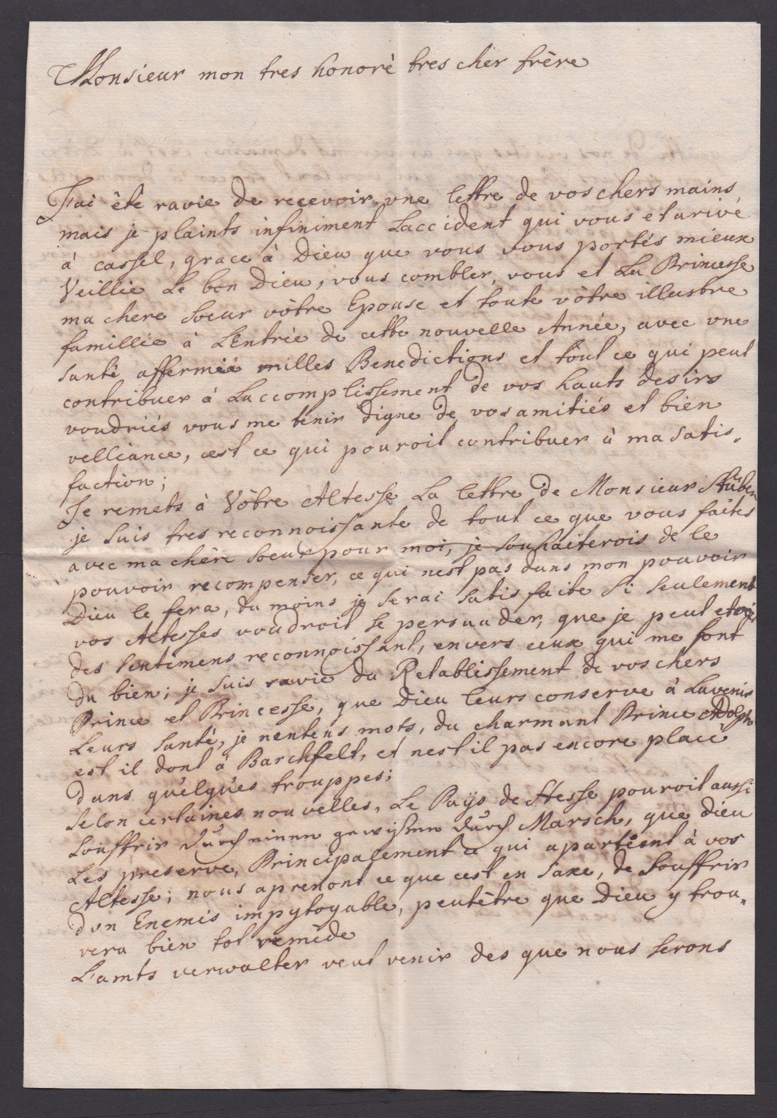 "Neustadt/Saale", 1756, Teilfrankobrief "franco Jena", Couvert mit Inhalt an den Landgrafen von Hessen in Barchfeld über den Postmeister Reinhardt in Jena, rs. 2 Ggr. Porto vermerkt