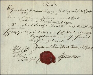 "Neustadt/Orla", 1814, seltene handschriftliche Zeitungsquittung mit Siegel des kgl. sächsischen Postamtes und Unterschrift des Postmeisters Mittlacher