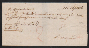"Nassau", (1794), "de Nassau" hs. auf Trauerbriefhülle nach Lucklum mit Vermerk "frey Duderstadt, p. Braunschweig"