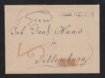 "Nassau-Neuhof", 1839, L1 "H. NASS. NEUHOF" klar auf kl. austaxiertem Prachtbrief nach Dillenburg (unten kl. Fleck). Selten