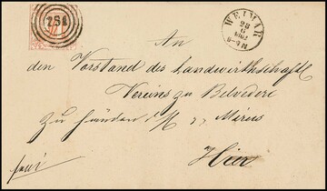 1/4 Sgr. rötlichorange, weitgehend voll- bis breitrandig, als gute Einzelfrankatur auf Pracht-Ortsbrief aus Weimar 1862 (K1 und NS "251")