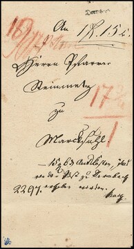 "Buttstaedt", nachverw. K2 klar auf Brief mit besserer Einzelfrankatur 1/2 Gr. gr. Brustschild (ein Zahn)