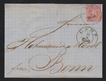 "Dietz", 1845, kräftiger L2 (optisch wie Ra2) nebst "PP" und "Franco" auf seltenem, voll bezahltem Auslandsbrief in die Niederlande