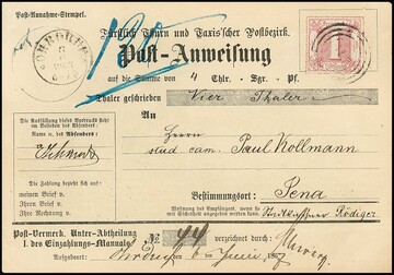 1867, nicht mehr zur Verwendung gekommenes, ungebrauchtes Postanweisungsformular mit Inschrift "Deutscher Postverein"