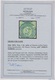 1 Kr. grün, dünnes Papier, Kabinettstück mit seltenem blauem NS "424" (Johannisberg), sign. Haferkamp, Sommer und Attest Sem, ex Slg. Erivan Haub