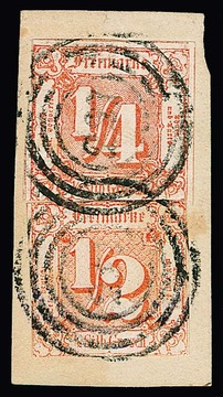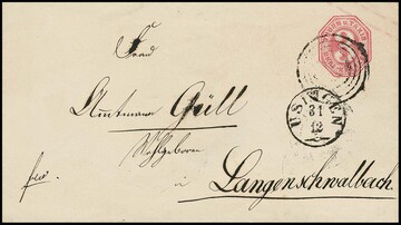 "211" zart, nebst Silvester-K1 "Usingen", auf Ganzsache 3 Kr. (rs. ein Siegel entfernt). Feuser + 500,-