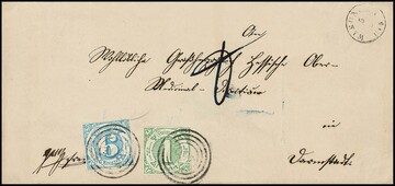"236" nebst K1 "Kaltennordheim", jeweils in sehr seltener blauer Farbe, auf Brief mit 1/4 und 1/2 Sgr., Feuser + 1800,-, Attest Sem
