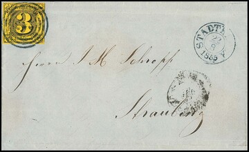 "243" nebst K2 "Stadtremda", je in seltener blauer Farbe, klar auf Brief mit breitrandiger 3 Sgr. schw./gelb (Bugspur), Fotoexp. Sem. Feuser + 1000,-
