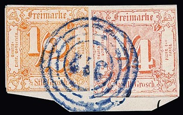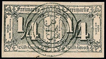 "373" (Grossrudestedt) in schwarz sehr schön klar auf Prachtbriefstück mit Paar 1/4 Sgr. schwarz (nur oben ganz winzig berührt), sign. Krause u.a.
