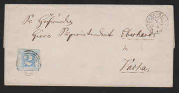 "313" nebst K2 "Nazza", je in blau, auf kleinem Briefchen mit 1/2 Sgr., normal geschnitten, 1860 nach Eisenach