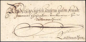 "Eisenach", (1780), handschriftliche Aufgabe auf dekor. Adelscouvert an den Fürsten zu Hohenlohe in Kupferzell
