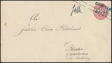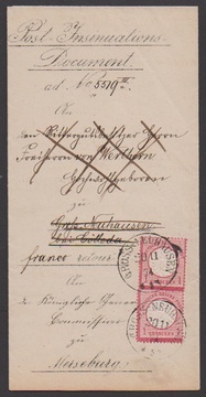 "Gross-Neuhausen", neuer Ablöse-K1 klar auf NDP-Ganzsache 1 Gr., sowie auf dekor. und frischem Retour-Post-Ins.-Doc. mit zweimal 1 Gr. Brustschild (ein winziger Spalt)