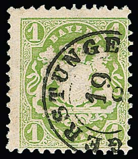 "Gerstungen", seltener K2 als Fremdentwertung auf perfekter Bayern 1 Kr. grün, Wappen, sign. Pfenninger