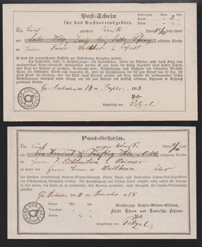 "Gerstungen", nachverw. K2 auf Paketbegleitbrief mit NDP 1/2 und 2 Gr., sowie auf Brief 1 Gr. NDP
