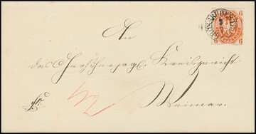 "Gerstungen", nachverw. K2 auf Brief (Falten ausserhalb) mit 1 Gr. kl. Brustschild, sowie Ablöse-K1 auf Brief 10 Pfge. 1877
