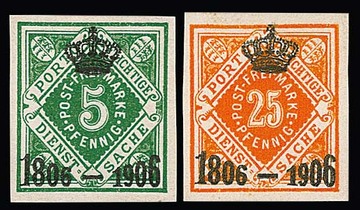 Krönchen-Aufdrucke, je ungezähnte Probedrucke auf Kanzleipapier, Mi. 1000,-