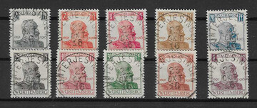 Fünf gute Serien, je gest., geprüft: Nr. 107-11, 123-29, 144-49, 201-7 und 241-50. Mi. 790,-