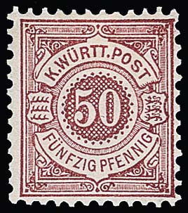 70 Kr. braunlila, Luxusstück mit zentrischem Fächerstempel "Stuttgart". In dieser Erhaltung selten, Fotoatteste Pfenninger, Irtenkauf. Mi. 7000,-