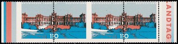 110 Pfg. Bayerischer Landtag im postfrischen Paar mit extrem versetzter Zähnung, dadurch linke Marke nur einmal mittig gezähnt und seitlich ungezähnt, siehe Foto