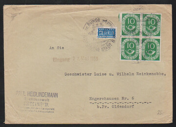 20 Pfg. Posthorn, senkrechter Andreaskreuz-Zusammendruck auf tadellosem Bedarfsbrief, sign. Büning und Attest D. Schlegel. Mi. 1300,-