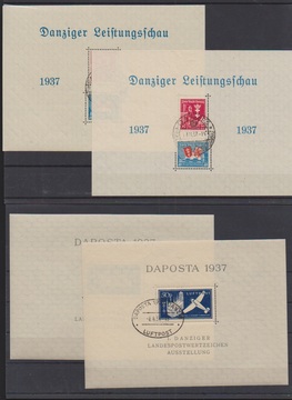 DAPOSTA-Blockpaar, b-Farbe, sowie Leistungsschau-Block, je mit Plattenfehler I, dazu normaler Bl. 3, alle gest. (SST, ESST), teils sign. Gruber. Mi. 500,-