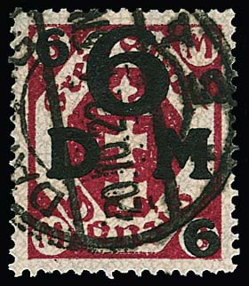 Dienstmarke 6 a. 3 Mk. in guter Farbe karminrot gestempelt, Fotoexp. Gruber. Mi. 350,-