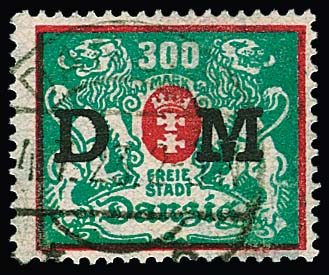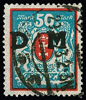 Dienst, 50 Mk. Staatswappen tadellos gestempelt "Tiegenhof", Fotoattest Gruber "einwandfrei". Mi. 1900,-