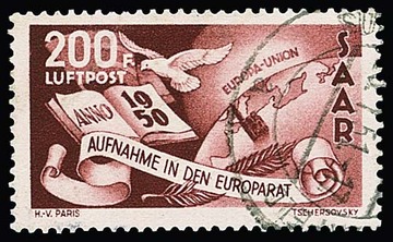 25 Fr. Europarat als EF auf NN-Brief der Versandstelle für Postwertzeichen aus Saarbrücken 1951
