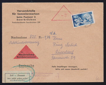 Hochwasserhilfe komplett auf Satz-R-Brief aus Saarbrücken, 15.10.48, Mi. lose 500,-