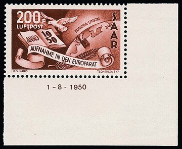 Europarat, je postfrische rechte untere Bogenecken mit Druckdatum, Mi. 550,-