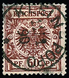 Vorläufer Krone-Adler 50 Pfg. bräunlichrot auf kleinem Briefstück mit K1 "Klein-Popo", 23.7.90. Attest Jäschke-L. "fehlerfrei". Mi. 550,-