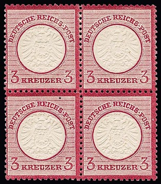 3 Kr. karmin, postfrischer Kabinett-Viererblock, Mi. lose 440,- ++