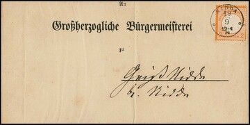 2 Kr. orange, gut gezähntes Kabinettstück mit zentrischem K1 "Nidda" als Einzelfrankatur auf mittig gef. Brief in den eigenen Landbezirk. Sign. Thier und Attest Krug. Mi. 8000,-