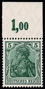 5 Pfg. schwarzgrün als postfrisches Plattendruck-Oberrandstück, sign. Zenker. Mi. 800,-