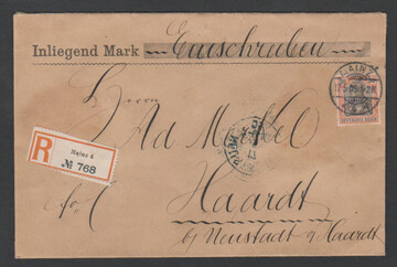 30 Pfg. Germania als EF auf Inlands-R-Brief, sowie per zwei auf Wertbrief, ferner 40 Pfg. als EF auf R-Brief, alle aus gleicher Korrespondenz nach Haardt 1905
