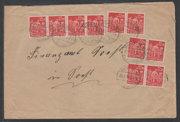 12 Mk. Arbeiter per zehn, einmal sehr markanter Plattenfehler "Delle im Oberrand", als gute MeF auf Brief (typische Gebrauchserhaltung und Öffnungsspuren) von Büderich 1923 nach Bork