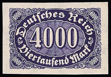 4000 Mk., Abart "ungezähnt" als postfrisches rechtes Randstück, sign. Winkler. Mi. 150,-