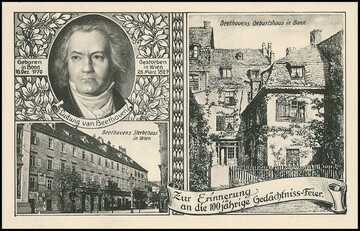 Privat-Ganzsachenkarte 5 Pfg. Schiller, zwei verschiedene ungebrauchte Karten, Motiv Beethoven, einmal Künstler mit Unterschrift, die andere Beethovens Geburts- und Sterbehaus, beides seltene Musikkarten!
