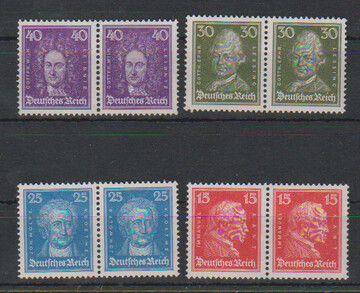 Berühmte Deutsche, 15, 25, 30 und 40 Pfg. je in postfrischen waager. Paaren, Mi. 594,-