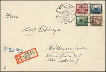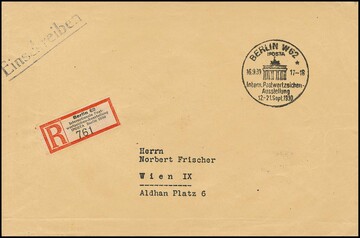 IPOSTA-Block rs. auf Auslands-R-Brief (Couvert an den Rändern gebrauchsbedingte Faltspur) von Berlin nach Wien. Mi. lose gest. 2000,-