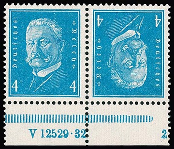 4 Pfg. Hindenburg, postfrischer Kehr-Zusammendruck mit HAN "V12529.32", Mi. 300,-