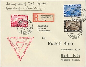 Chicagofahrt kpl. auf sauberem Zeppelin-R-Brief ab Friedrichshafen, Mi. 1550,- +