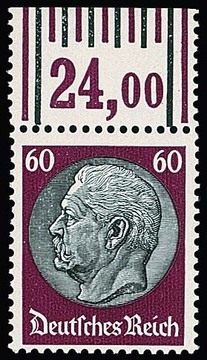 50 und 60 Pfg. Hindenburg-Medaillon, je tadellos postfrische Walzendruck-Oberrandstücke, Mi. 830,-