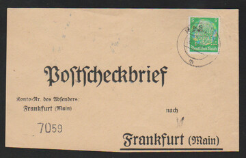 5 Pfg. (Hindenburg mit POL-Lochung, Couvert verkürzt, ferner Flugpost und Hindenburg-Trauer), drei Einzelfrankaturen auf Postscheckbriefen