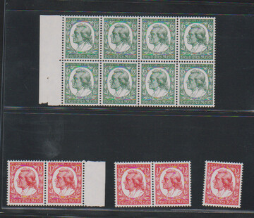 Saarabstimmung (6 Pfg. zwei Werte min. Gummifehler), Reichsparteitag und Schiller je in postfrischen Viererblöcken. Mi. 1100,-