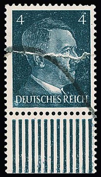 4 Pfg. Hitler postfrisch mit seltener Abart "geklebte Papierbahn", vom Unterrand mit Makulaturstrich, Mi. 700,-