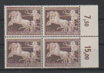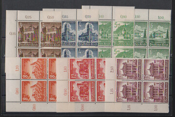 WHW Bauwerke einheitlich in postfrischen Viererblöcken aus der linken oberen Bogenecke, Mi. 160,- ++