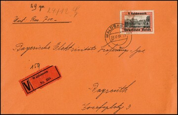 1 RM Danzig einzeln auf nahezu portogerechtem Wertbrief aus Waldsassen, 23.12.39