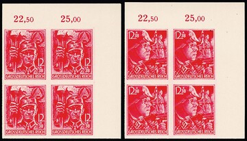 SA/SS sowohl gezähnt als auch geschnitten je in postfrischen Eckrand-Viererblöcken, Mi. lose 700,- ++