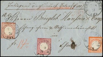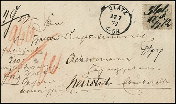 10 Gr. grau (kleine Mängel) als seltene Einzelfrankatur auf Wertbrief (viel seltener als die sonst vorkommenden Einzelfrankaturen auf Paketbegleitbriefen!) aus Glatz, Attest Hennies. Mi. 5000,-